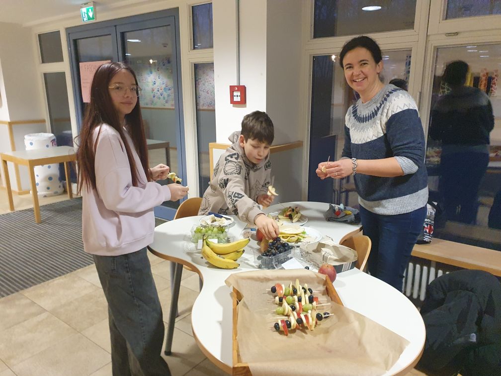 Besonders großen Wert legte das Team darauf, nur fair gehandelte und regionale Lebensmittel bereitzustellen. Die gesunden und süßen Snacks kamen bei den Mitschülerinnen und Mitschülern sehr gut an, und viele nutzten die Gelegenheit, sich über fairen Handel zu informieren.