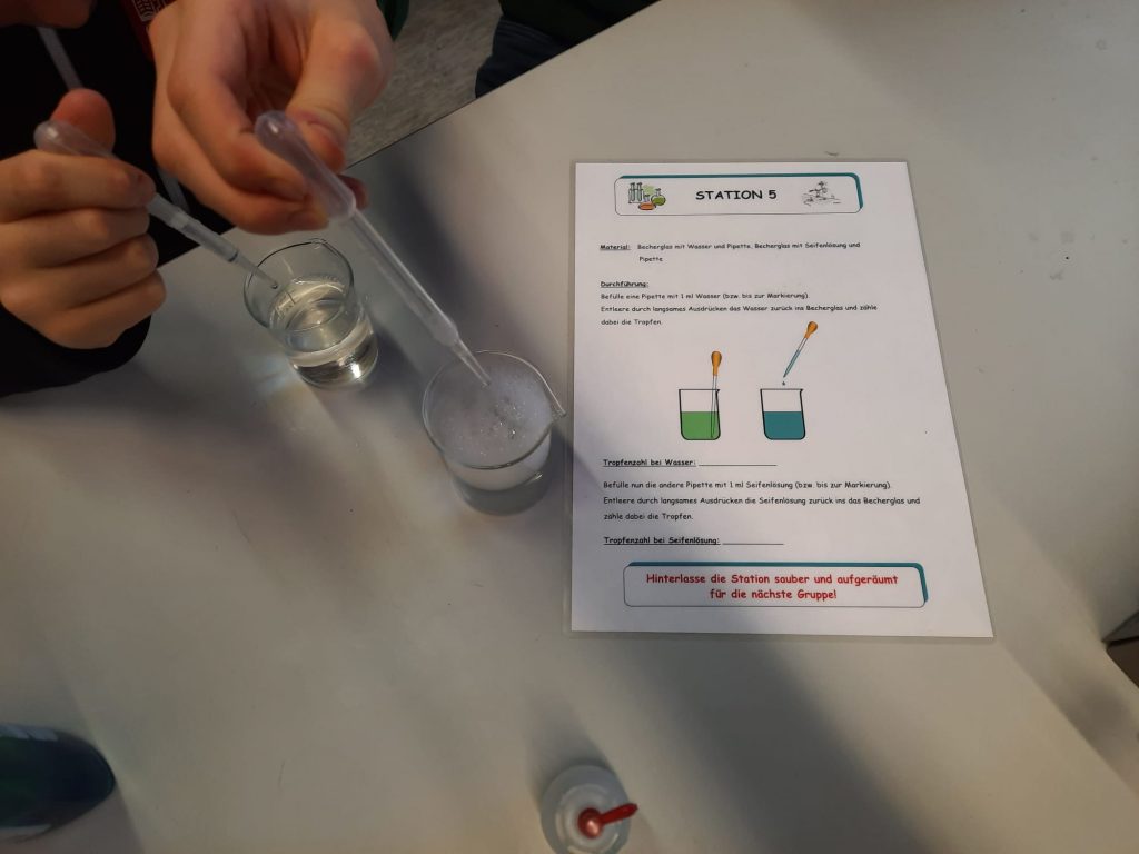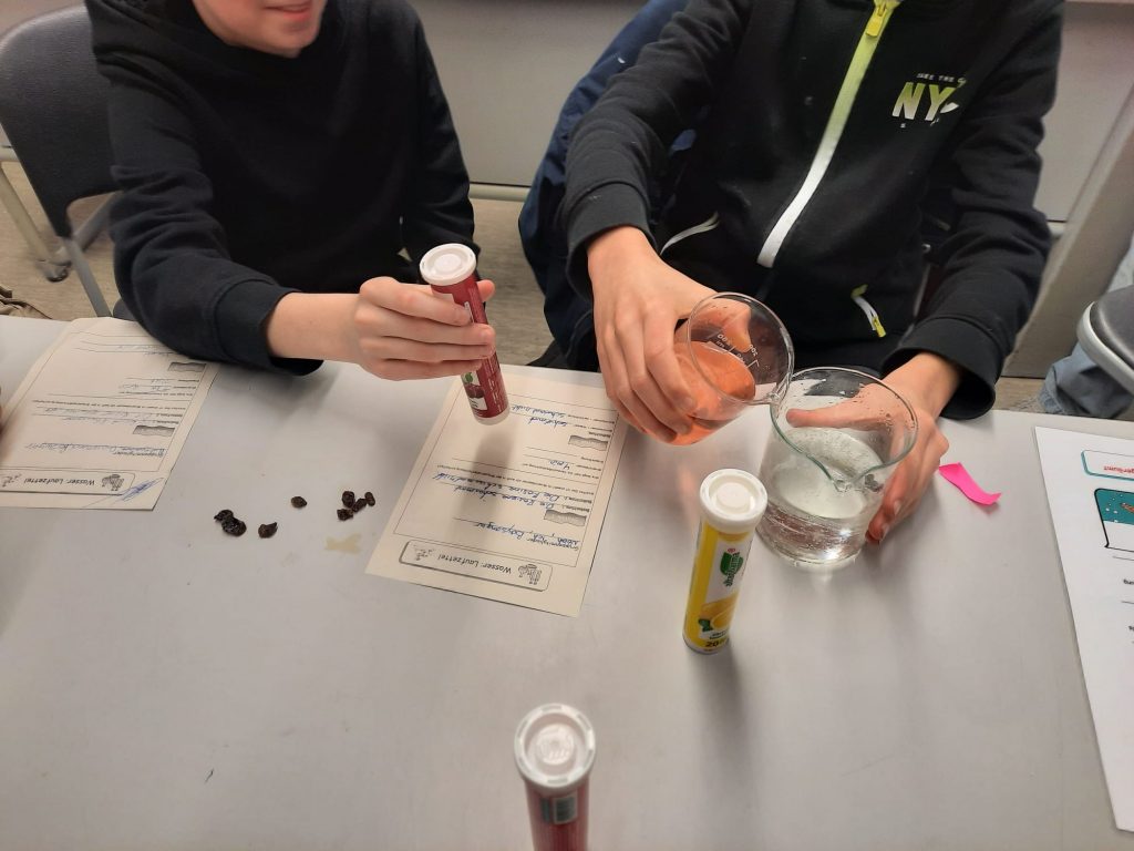 Am ersten Tag stand für die Fünft- und Sechstklässler das praktische Experimentieren im Mittelpunkt. In kleinen Gruppen erkundeten sie an verschiedenen Stationen spannende naturwissenschaftliche Phänomene: Lightpainting, die Herstellung eines Indikators aus Blaukraut, den Bau eines Fallschirms, faszinierende Experimente mit Wasser, knifflige Körperrätsel und Schiffsbau – all das sorgte für Begeisterung und spielerisches Lernen.