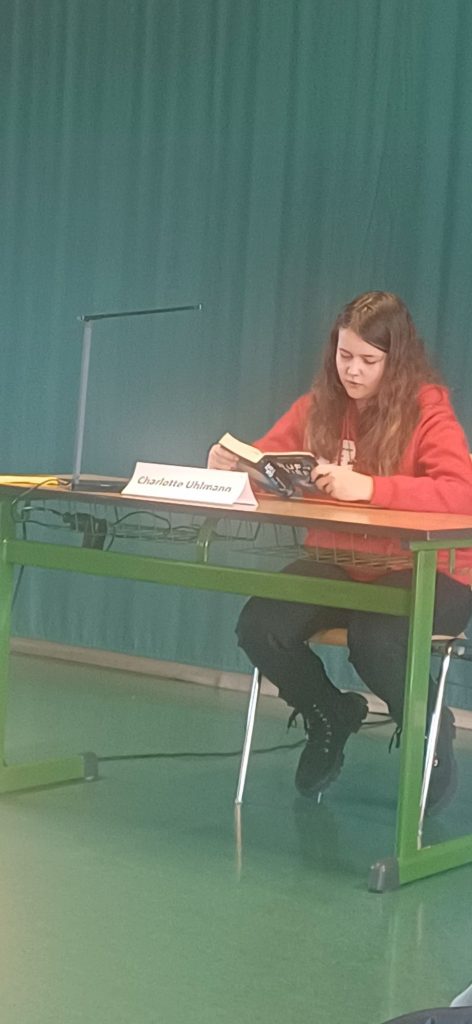 Doch bekanntlich kommt das Beste zum Schluss. Charlotte begeisterte das Publikum mit einer Passage aus Ruf der Tiefevon Katja Brandis und Hans-Peter Ziemek, während Felix mit einem Abschnitt aus Löcher von Louis Sachar überzeugte. Beide beeindruckten die Jury mit ihrer ausdrucksstarken Lesetechnik und lebendigen Interpretation.