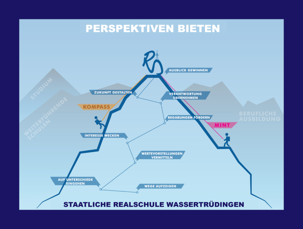Am Ende der Realschulzeit, auf dem Gipfel des Berges, können die Jugendlichen aktiv ihre Zukunft gestalten und Ausblick gewinnen.
